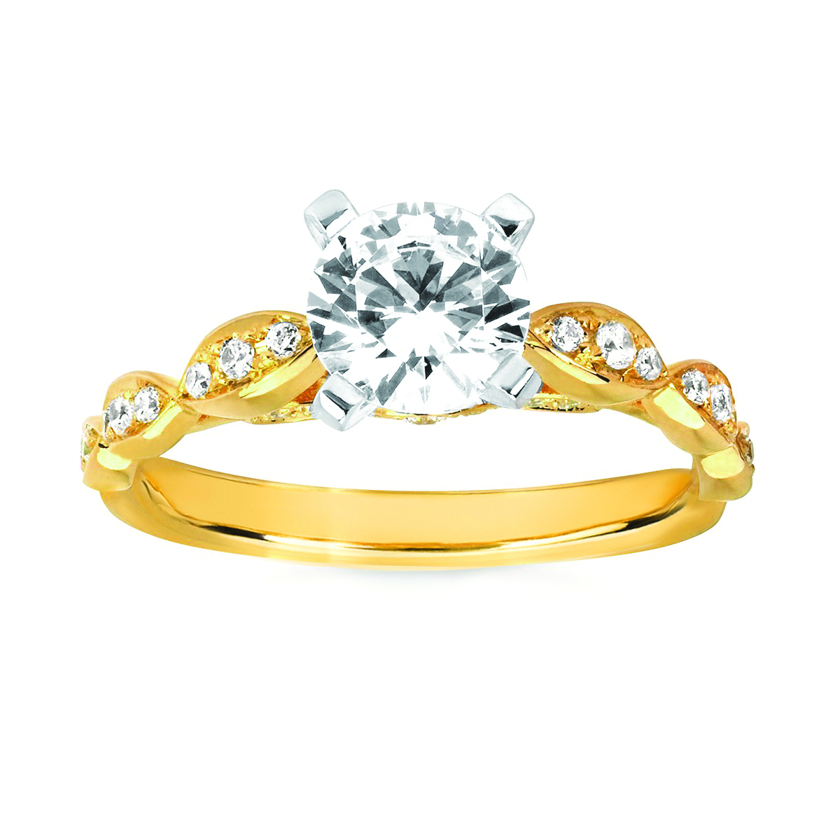 Engagement Ring Forever ElegantĀ® 1/5 Ctw. Diamond Semi Mount shown with 1 Ct. Round Center Diamond in 14K Gold