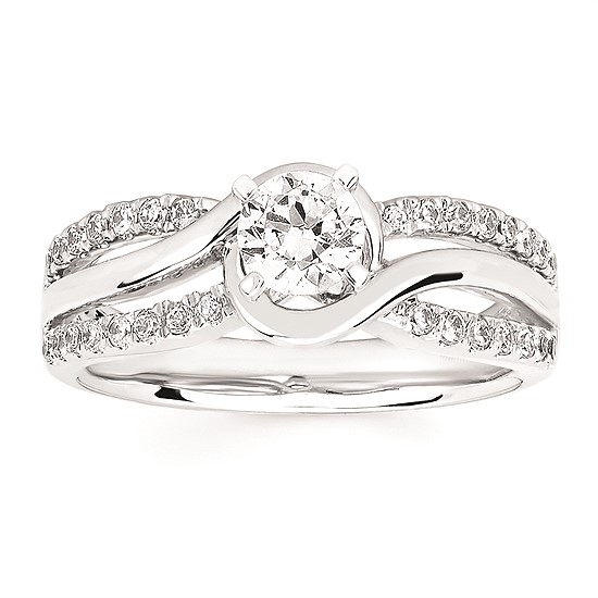 Engagement Ring Modern Bridal: 1/4 Ctw. Diamond Split Shank Semi Mount shown with 1/2 Ct. Round Center Diamond in 14K Gold