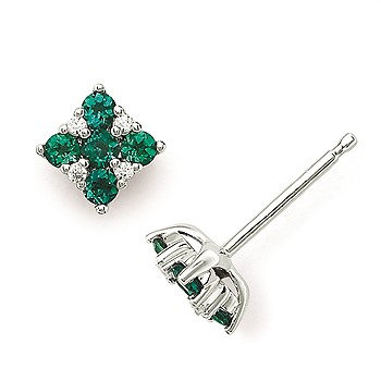 3/4 Tgw. Created Emerald And Diamond Square Stud Earrings In 14K Gold (Includes .06 Ctw. Diamonds)
