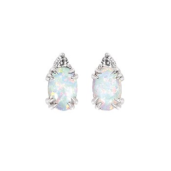 0.04Ctw Diamond & Created Opal Birthstone Earrings